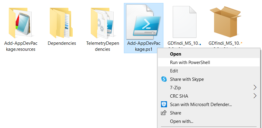 3. Right-click on the file "Add-AppDevPackage.ps1" contained in the extracted folder and select "Run with PowerShell".