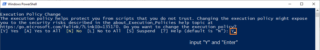4. When the message "Do you want to change the execution policy?" Enter "Y" and press enter.