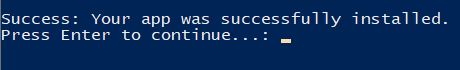 5. The installation is complete when you see the message: “Success: App installed successfully.”