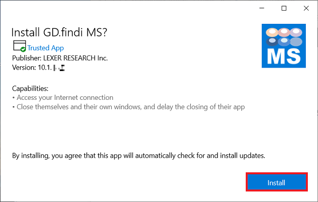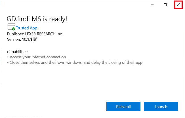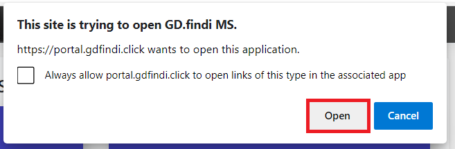 Click "GD.findi MS click to launch" button, then the following message will appear.