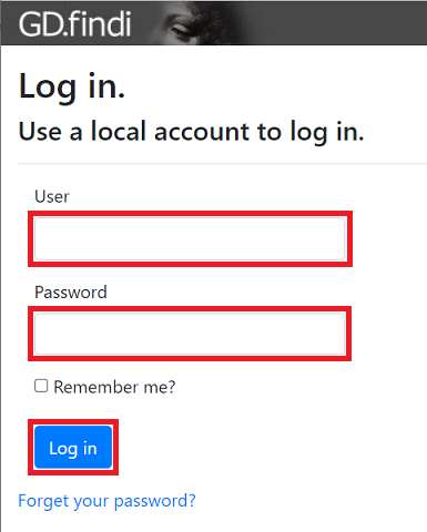 Please click on “click here to log in” to confirm that you can log in into GD.findi.