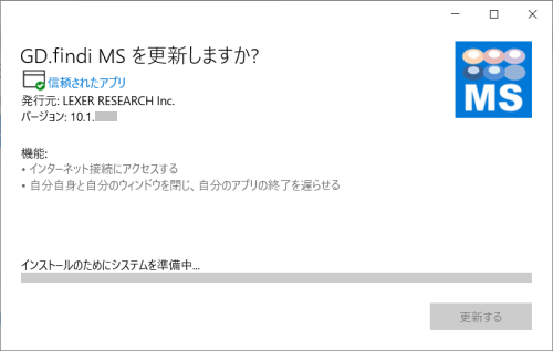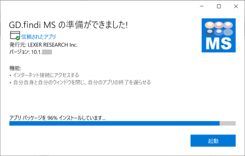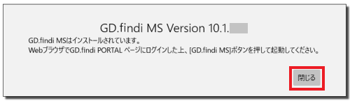 「GD.findi MSの起動」ボタンをクリックします。以下のメッセージが表示されます。
