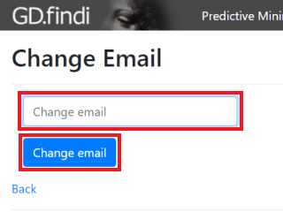 「Change email」欄に新しいメールアドレスを入力して、「Change email」ボタンをクリックします。