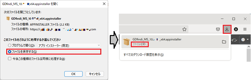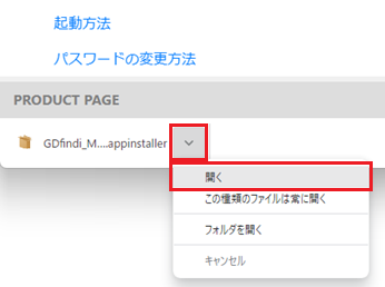 ブラウザでダウンロードしたファイルを開きます。