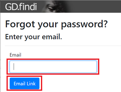 「Enter Your Email」欄に、GD.findiアカウント申請時にご連絡頂いたメールアドレスを入力し、「Send Email」ボタンをクリックしてください。