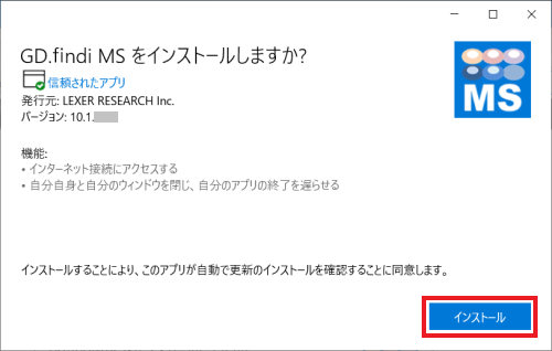 「インストール」ボタンをクリックします。