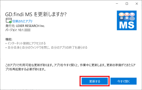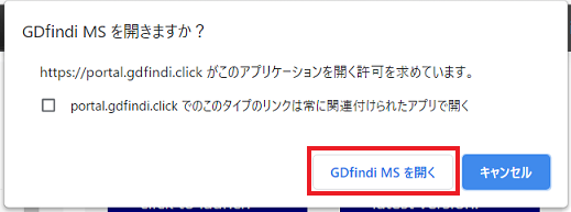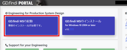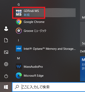 「GD.findi MSを開く」ボタンをクリックします。GD.findi MSが起動します。