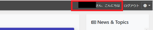ログインに成功したら、画面の右上に「こんにちは」というメッセージが表示されます。