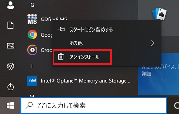 表示されるメニューで、アンインストールをクリックします。